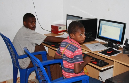 Dengan komputer baru ini, anak-anak bisa belajar komputer tanpa harus berebutan. Sementara komputer yang lama digunakan seorang pengajar yang sedang sibuk membuat materi pelajaran bahasa Inggris menggunakan program Power Point.