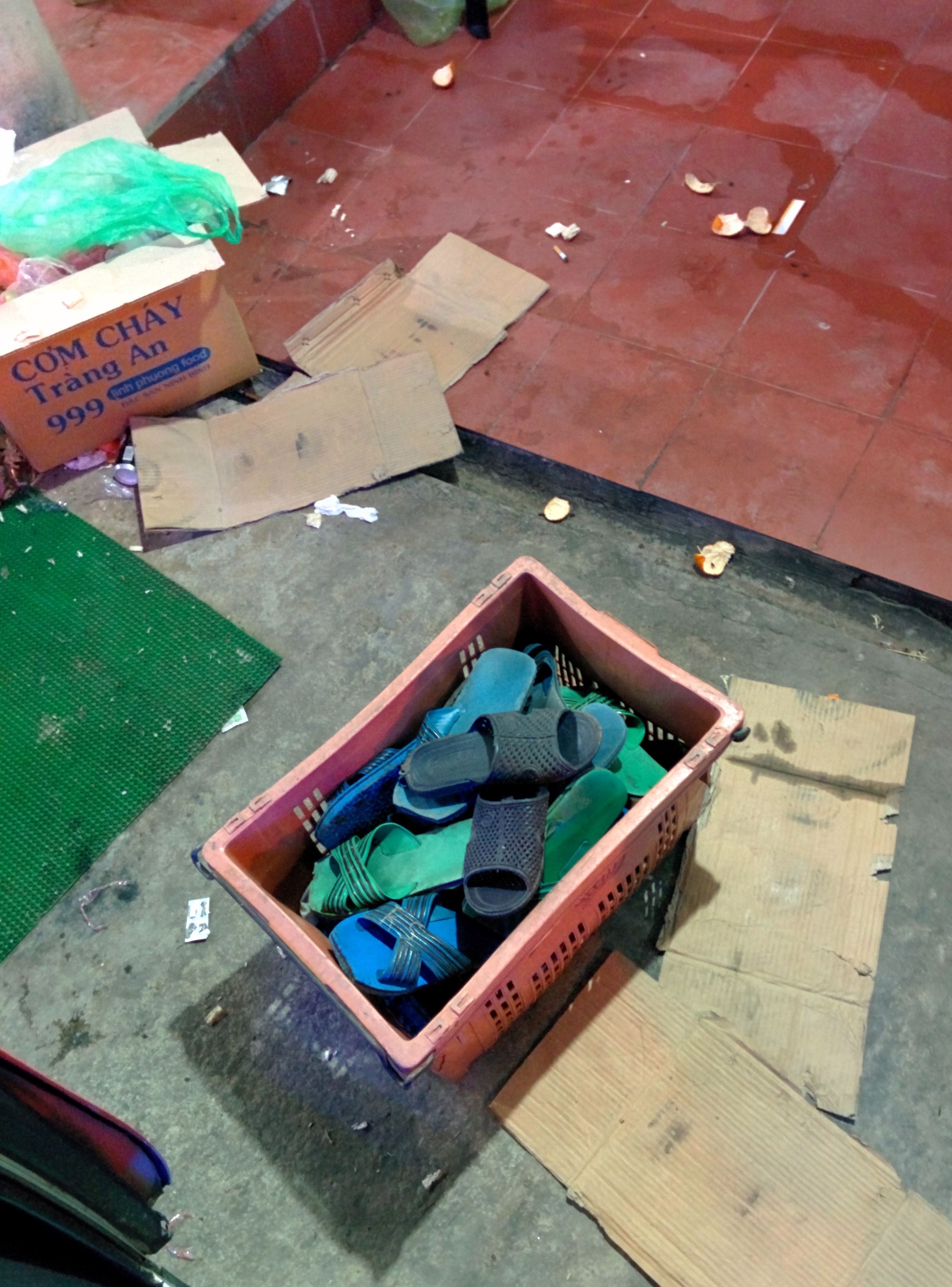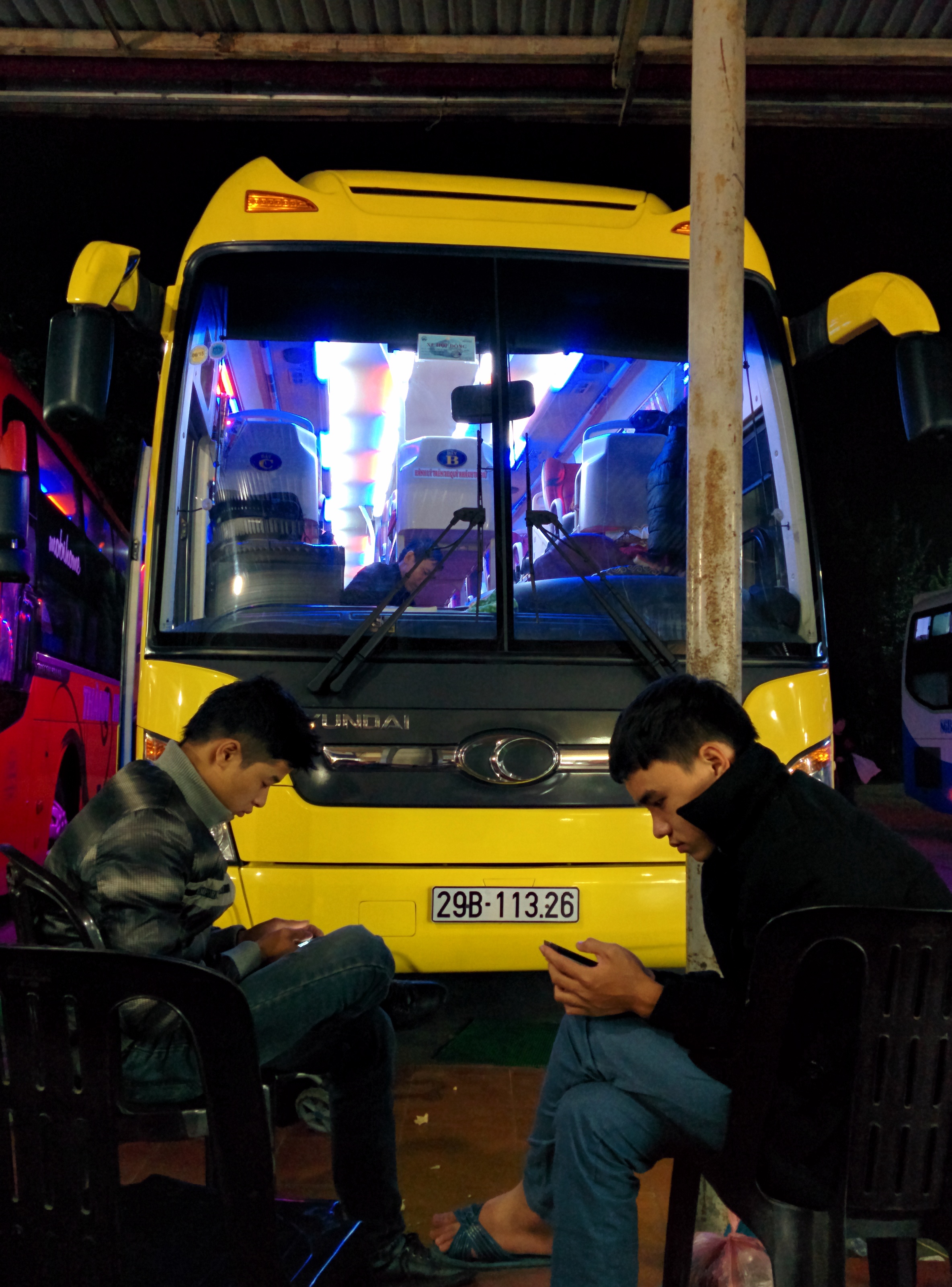 Keluar dari keramaian Old Quarter, taksi kemudian mlipir ke pinggir jalan raya. Ada dua bus besar yang sudah parkir. Sepertinya bukan pangkalan bus resmi. Setelah menunjukkan tiket, seorang pria yang pemarah mengajak kami masuk ke dalam dan meminta kami melepas sepatu. Dia menyorongkan sebuah kantong plastik. “Isi disini,” katanya dalam bahasa isyarat.