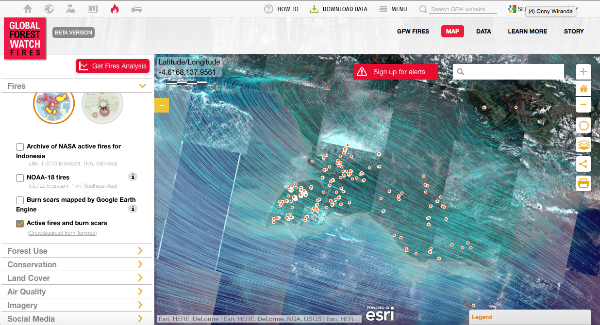 Pemandangan Timika dan Kuala Kencana yang biasanya cerah dan hujan lebat jadi kelabu seperti kota-kota di Sumatera dan Kalimantan, sekalipun belum terlalu parah. Orang-orang mulai pakai masker dan menduga bahwa asap datang dari perkebunan kelapa sawit di Iwaka, sebelah barat Kuala Kencana. Kemudian ada yang bilang bahwa ini adalah asap kiriman dari Merauke atau kabupaten tetangga seperti Asmat atau Mappi. Melalui twitter aku tanyakan ke teman di Merauke, tapi ternyata pace bilang di kota Merauke cuaca cerah seperti biasa. Penasaran dengan asal muasal asap, aku terus memaksa Mbah Google bekerja, hingga akhirnya aku menemukan situsweb Global Forest Fire Watch.