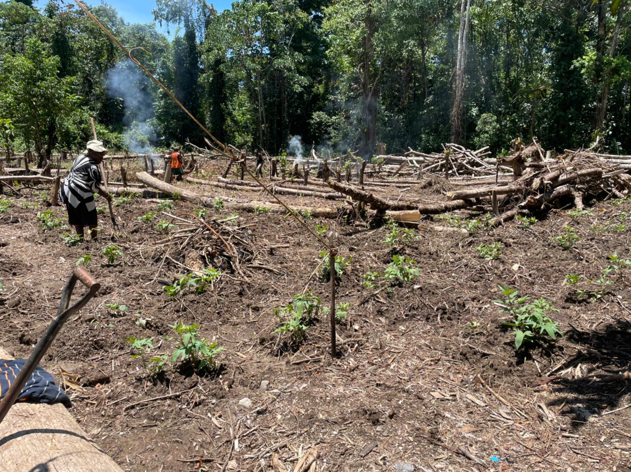 Dia bangga sekali dengan lahannya yang berlokasi sekitar 50 km dari Timika. Sejak punya lahan itu, setiap hari sabtu dia ke pergi ke lahannya. Di hari senin, dia akan menceritakan apa saja yang dia lakukan. Setelah beberapa kali cerita dan setelah sama2 isoman, akhirnya sekarang aku bisa melihat langsung lahannya.